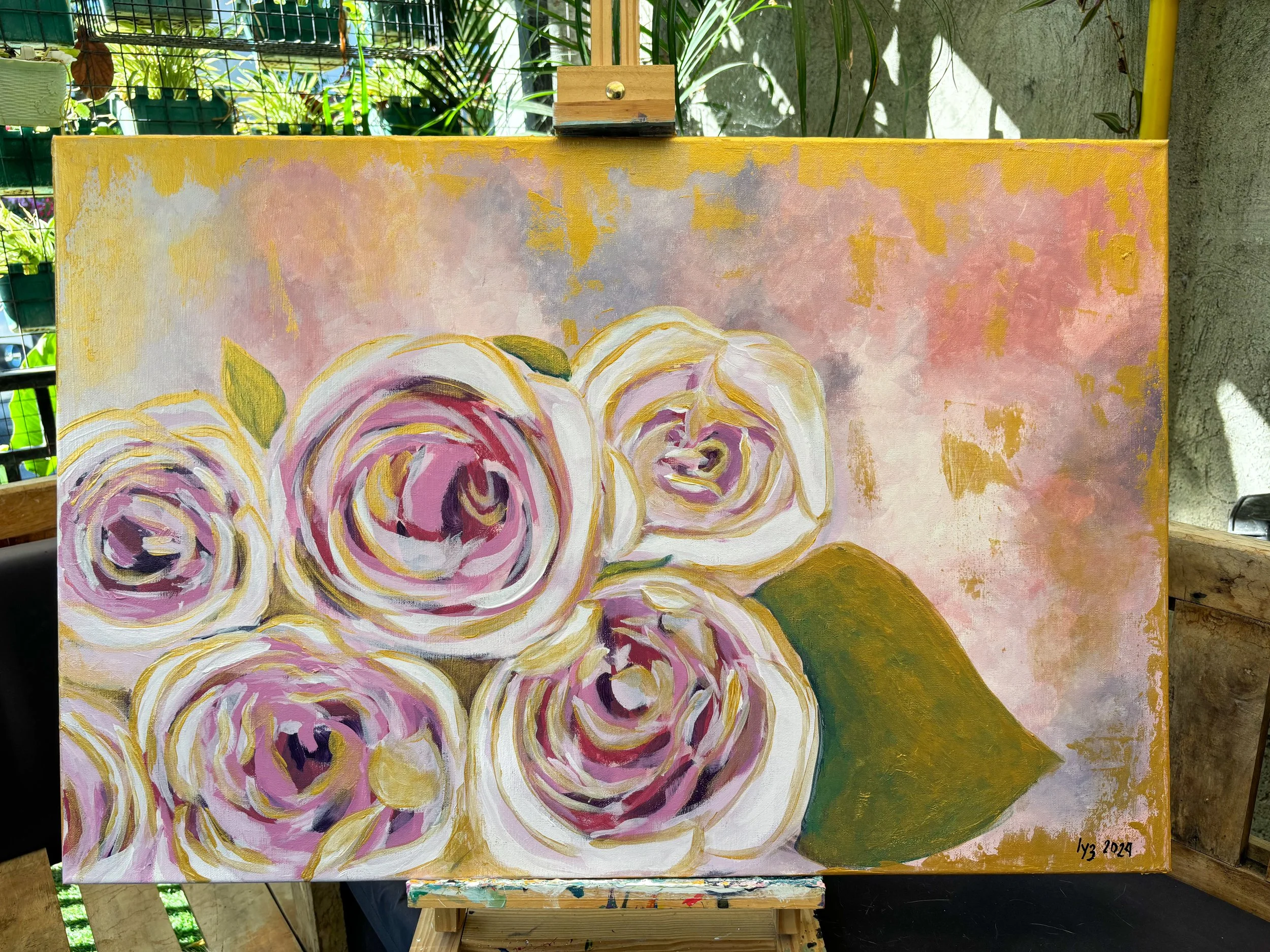 Slide 1 Slide 1 (current slide) Slide 2 Slide 2 (current slide) Slide 3 Slide 3 (current slide) Rose Gold (SOLD)30 x 20 inchesAcrylic on canvasGold painted sidingswith Certificate of Authenticity